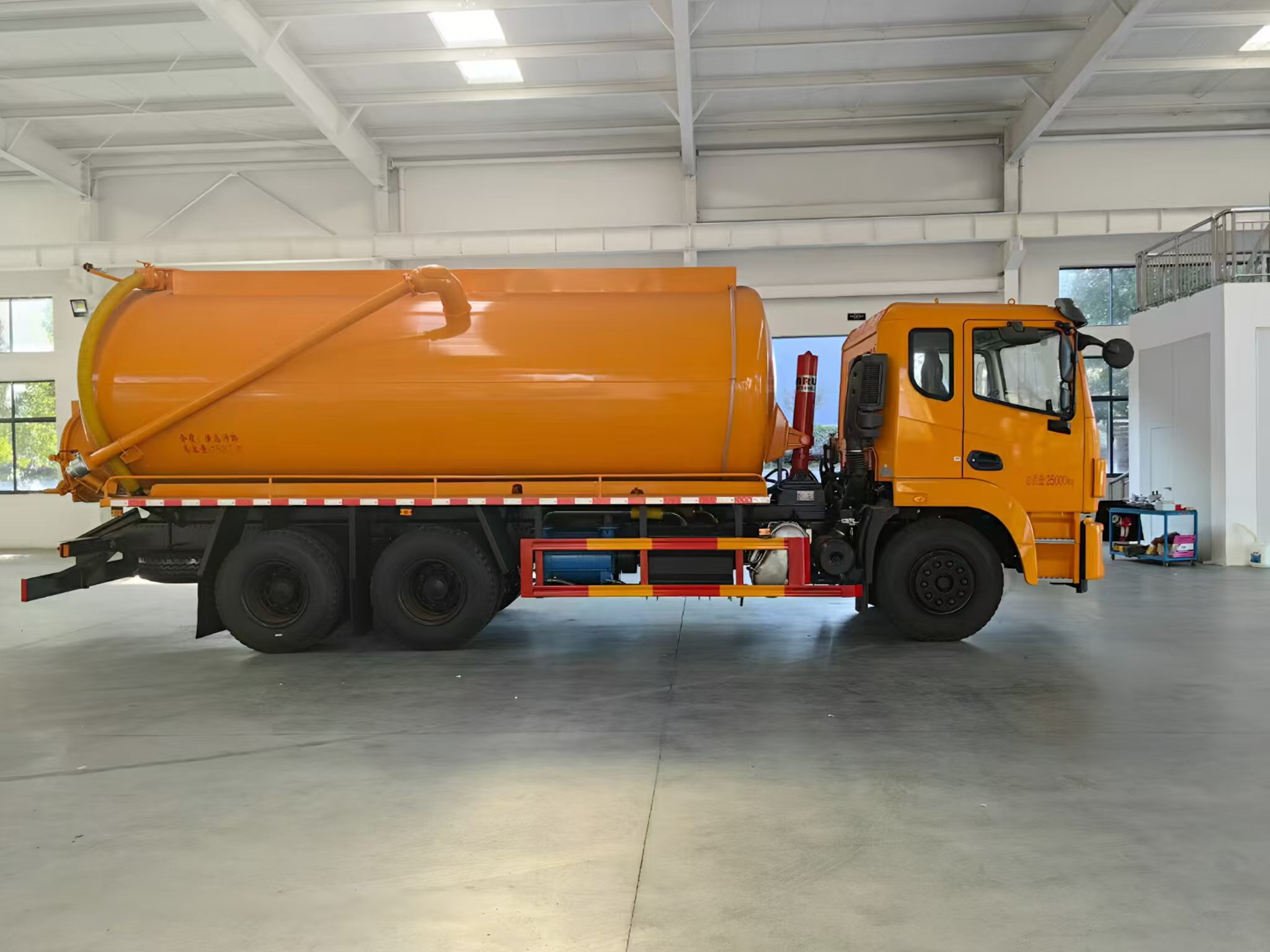 | 上裝配置 | 罐體容積約20方,8m碳鋼板材,選裝安裝山東204水環(huán)泵配,后封頭液壓打開。后封頭上一個800水泥蓋放污,可液壓開啟,后封頭一個6寸出口,一個100寸進(jìn)口直通罐頂,加強型車架,自卸車設(shè)計,罐體帶舉升功能(前頂自卸),罐體尾部箭頭燈,帶一個視污窗口。帶8米吸污管。其余廠內(nèi)標(biāo)配! | ||